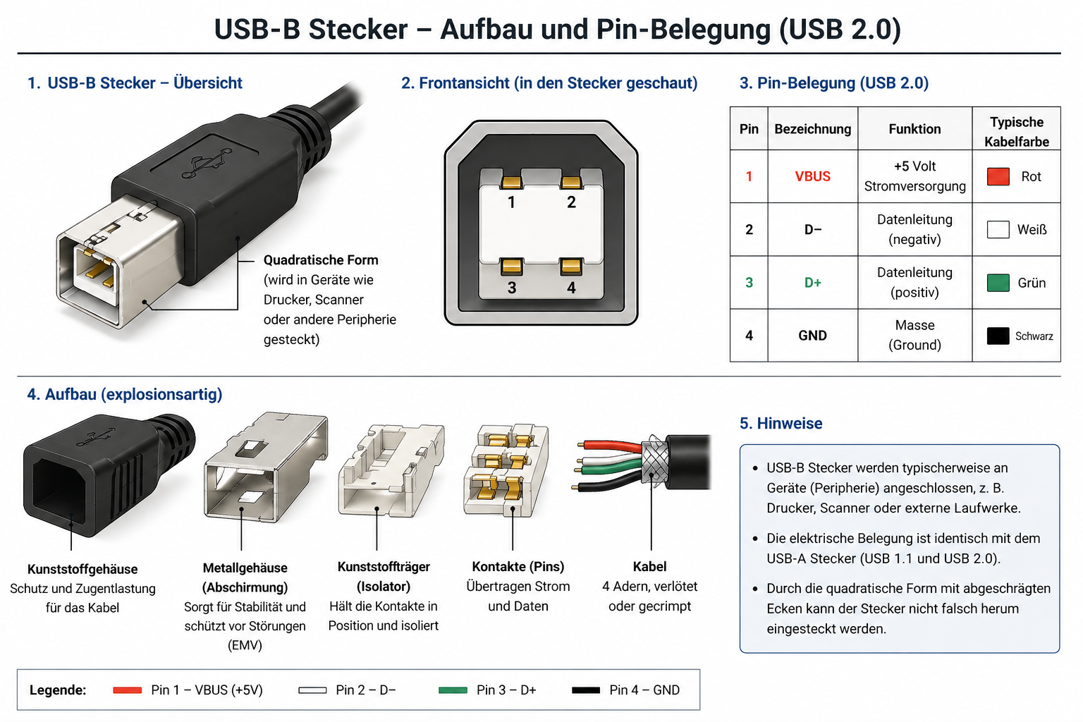 Mit USB 2.0 wurden auch die klassischen Steckerformen im Alltag richtig bekannt. USB-A wurde zum typischen Anschluss am Computer, am Netzteil oder später auch an Powerbanks. USB-B fand man häufig an Druckern, Scannern oder anderen größeren Geräten. Später kamen Mini-USB und Micro-USB hinzu, vor allem bei kleineren mobilen Geräten.